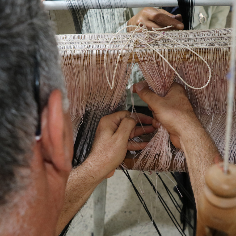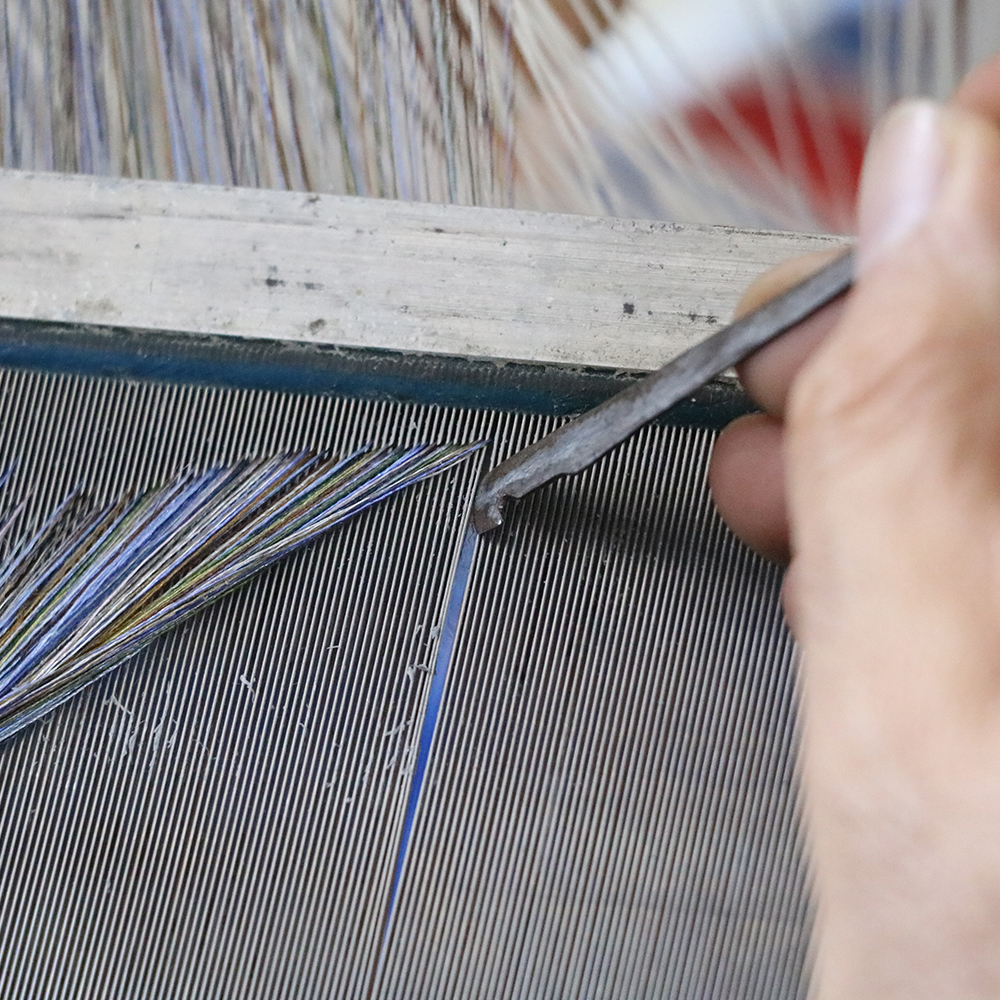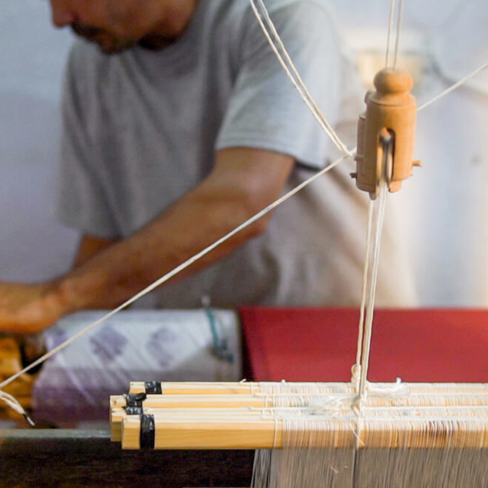 Das Weben eines Schals ist eine meisterhafte und anspruchsvolle Kunst. Jeder Schal wird aus bis zu 9 Kilometern feinster Seidenfäden gefertigt und entsteht durch bis zu 30.000 präzise Hand- und Fußpedalbewegungen. Dies erfordert eine Webzeit von 8 bis 24 Stunden, in denen volle Konzentration und Hingabe gefragt sind.